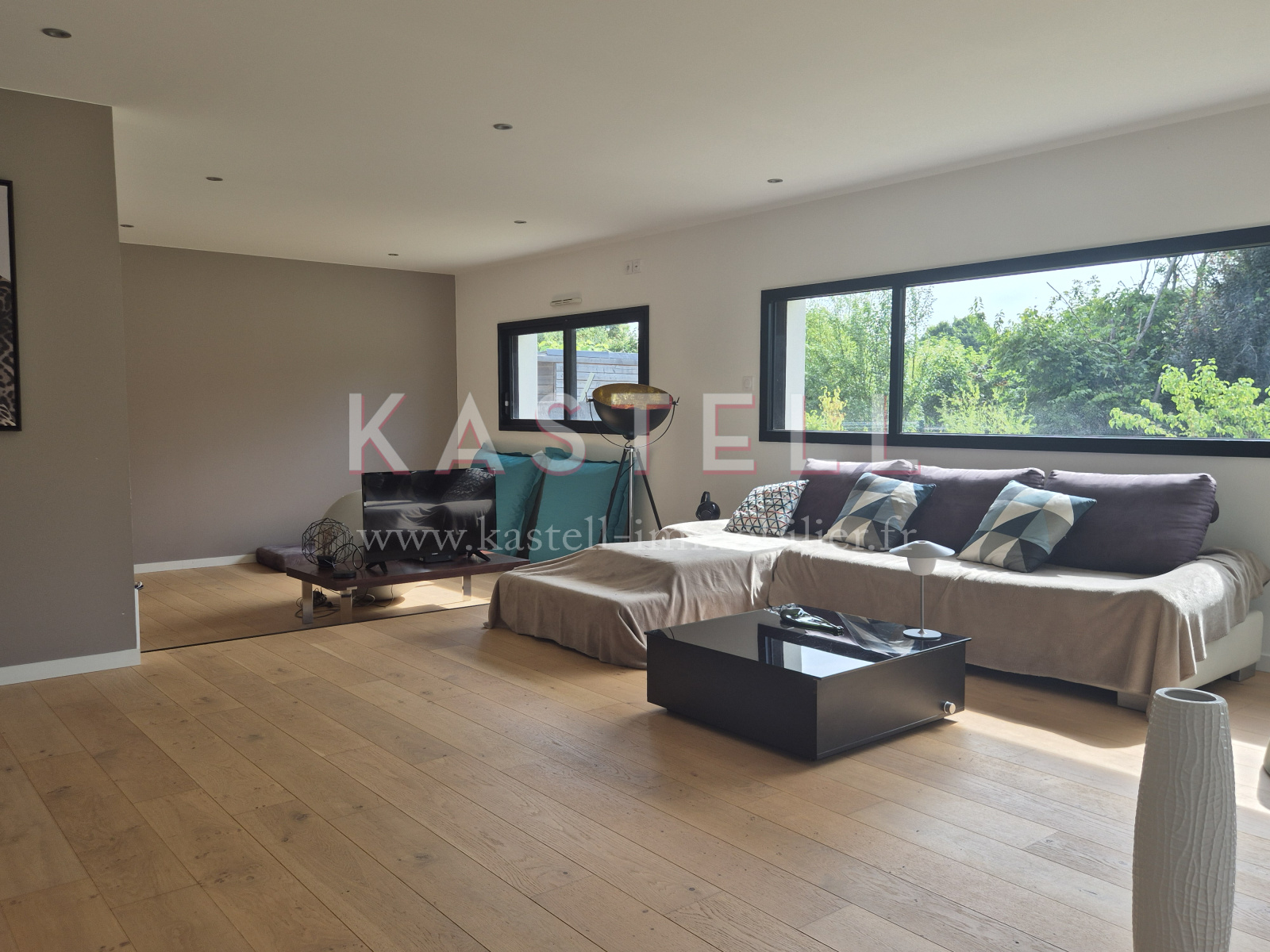 Cette élégante maison, achevée en 2016 bénéficie d’une architecture moderne. D’une surface de 216m² habitables, elle repose sur une parcelle paysagée de 1 350m2. Elle est conçue sur deux niveaux d'habitation, bénéficiant d’une architecture épurée ou la lumière devient un élément majeur du lieu de vie.