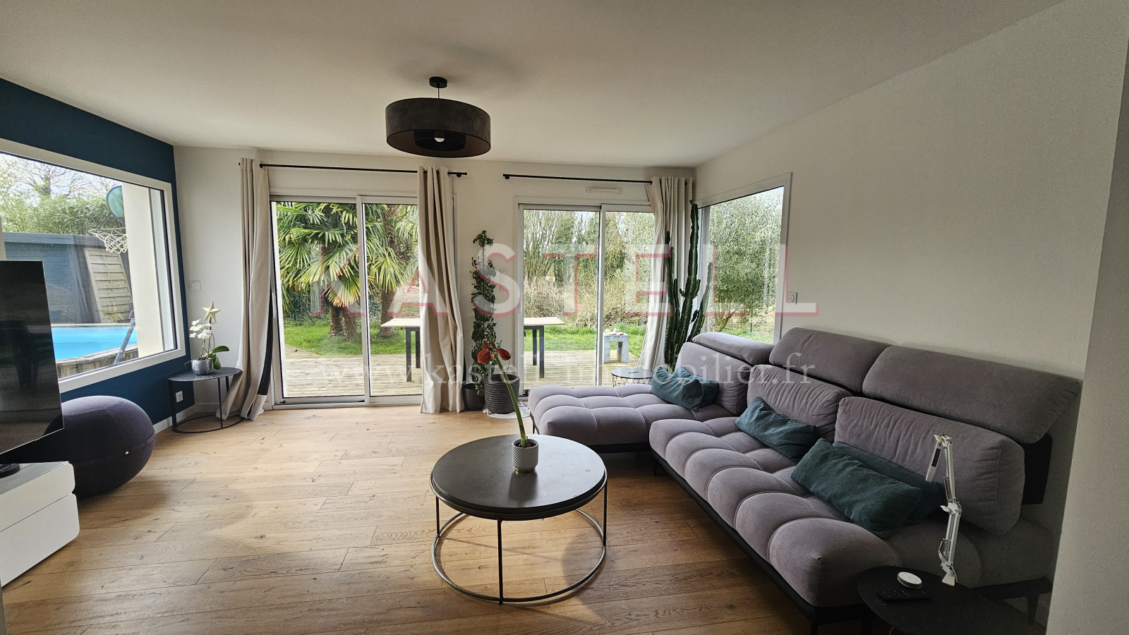 Cette maison bénéficie d'un terrain clôturé et arboré avec terrasse exposé plein Sud, et une piscine chauffée (pompe à cheleur de 2023). Environnement calme, et sans vis à vis.