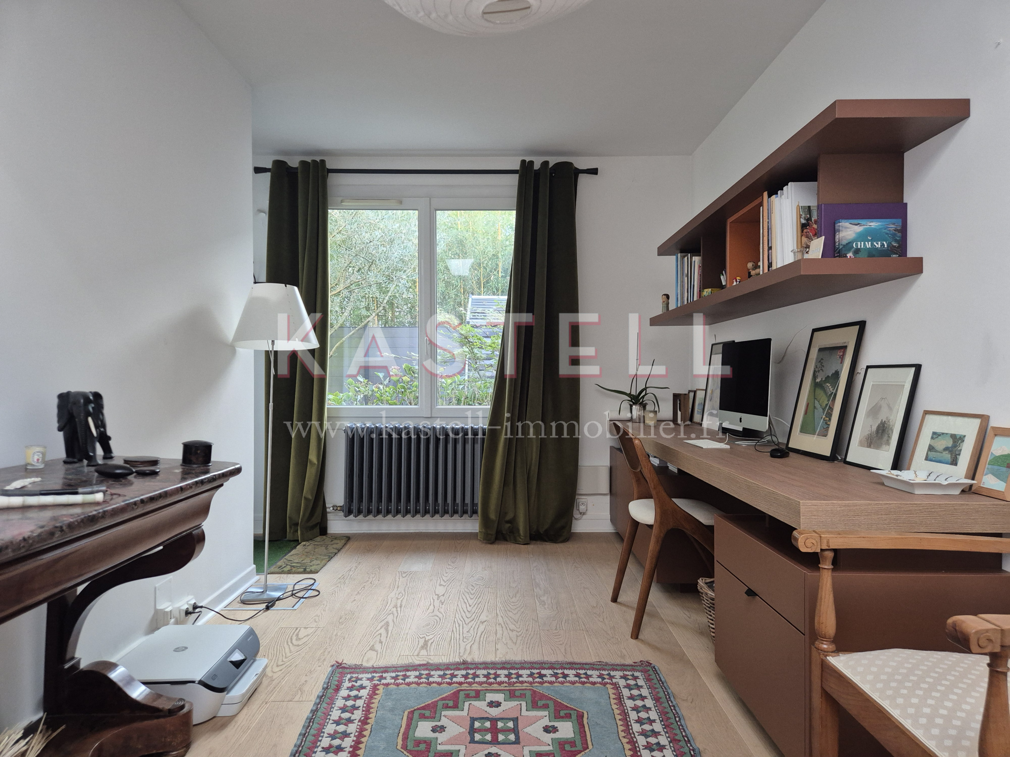 Au rez de chaussée on retrouve la pièce de vie, cuisine séparée, chambre ou bureau, le tout donnant sur le jardin de plain pied exposé est.