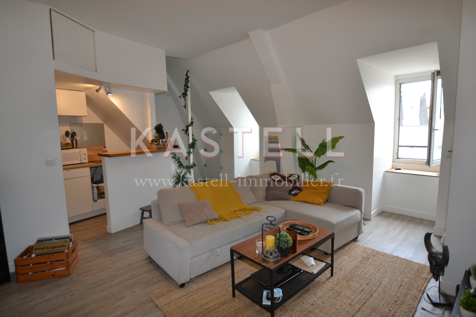 A vendre chez KASTELL IMMOBILIER, au coeur du quartier Oberthur, rue de Paris, appartement T2 en duplex de 36,23m2 carrez ( 45m2 au sol) composé comme suit: une pièce de vie avec petite cuisine/ à l'étage: chambre, salle d'eau et WC. Situé au 3eme et dernier étage sans ascenseur. Appartement vendu loué. Idéal investisseur. Commerces au pied de la copropriété. Charges de copropriété de 40 euros mensuel.Prix honoraires d'agence inclus : 160 500 euros, honoraires KASTELL IMMOBILIER de 7% soit 10 500 euros à la charge de l'acquéreur.
