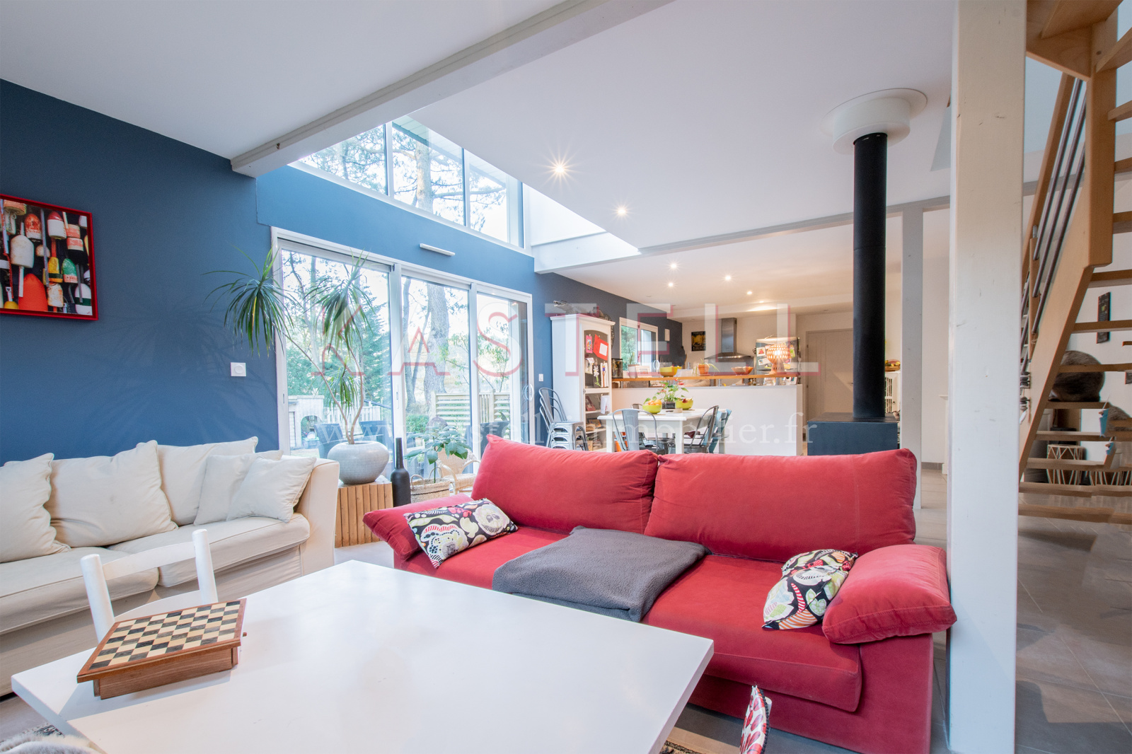 La maison construite en 2012 dispose d'une belle luminosité avec une orientation au sud et des volumes généreux. Au rez-de-chaussée un espace de vie avec une cuisine ouverte, un cellier, une chambre avec dressing et salle d'eau. A l'étage une mezzanine vitrée, 4 chambres et une salle de bains avec douche et baignoire. Un garage attenant à la maison complète ce bien.