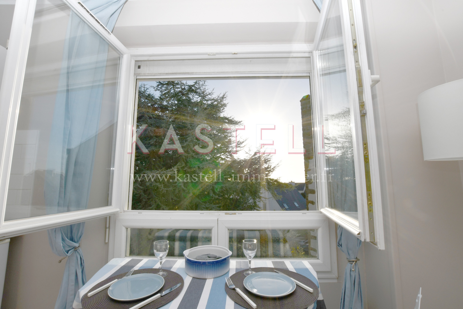 Appartement de type studio de 18,5 m2 orienté au sud et baigné de lumière, situé au deuxième étage sans ascenseur, dans une résidence au coeur du centre bourg de Carnac, à proximité immédiate des commerces et à 250 m de l’église.