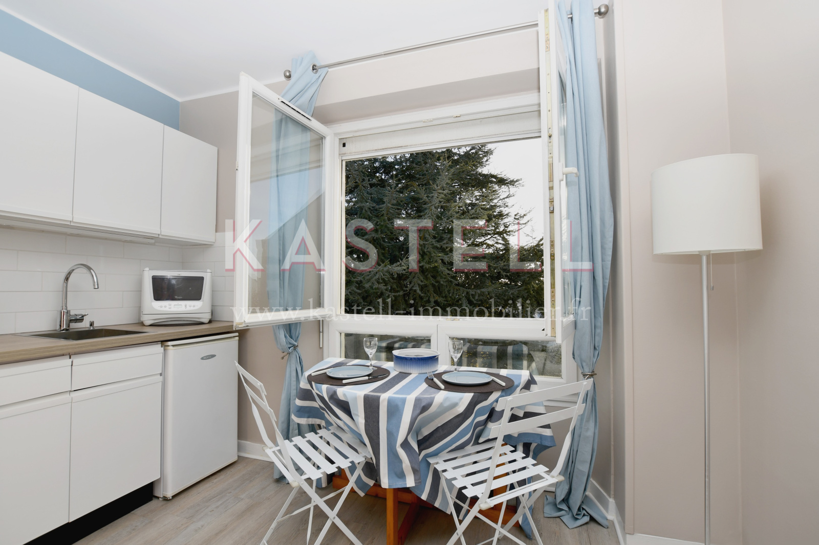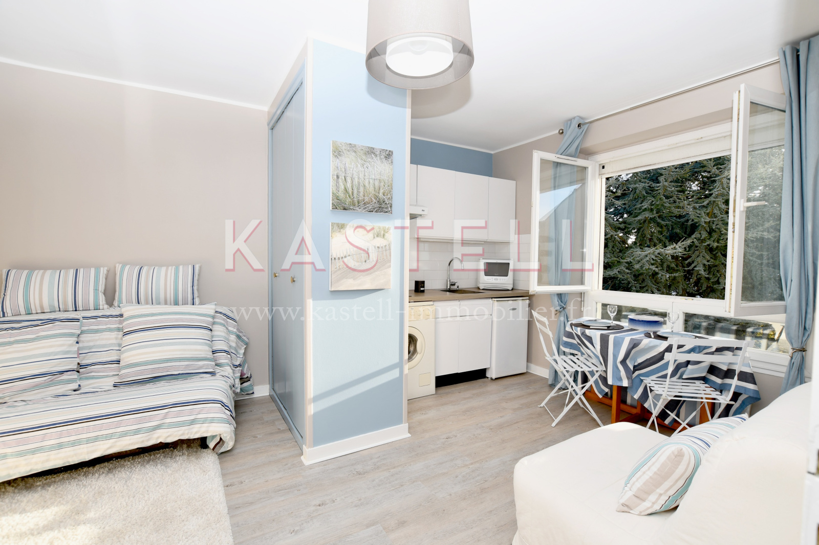 Entièrement rénové, il dispose d’une cuisine équipée ouverte sur le séjour, d’un coin salon TV convertible en espace nuit et d’une salle de bains neuve avec douche et wc.