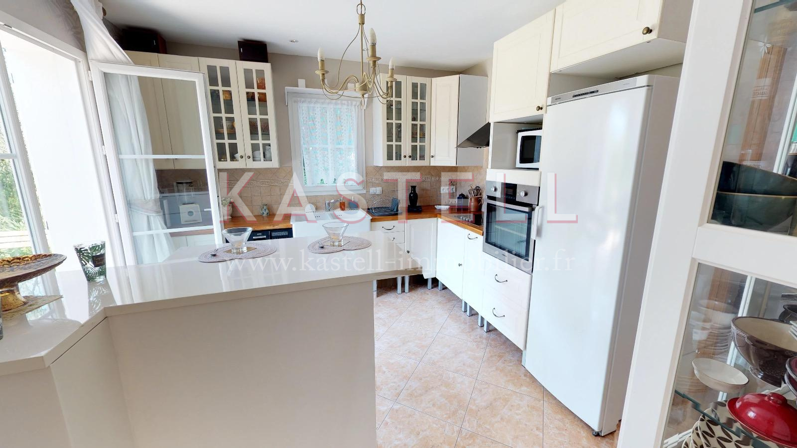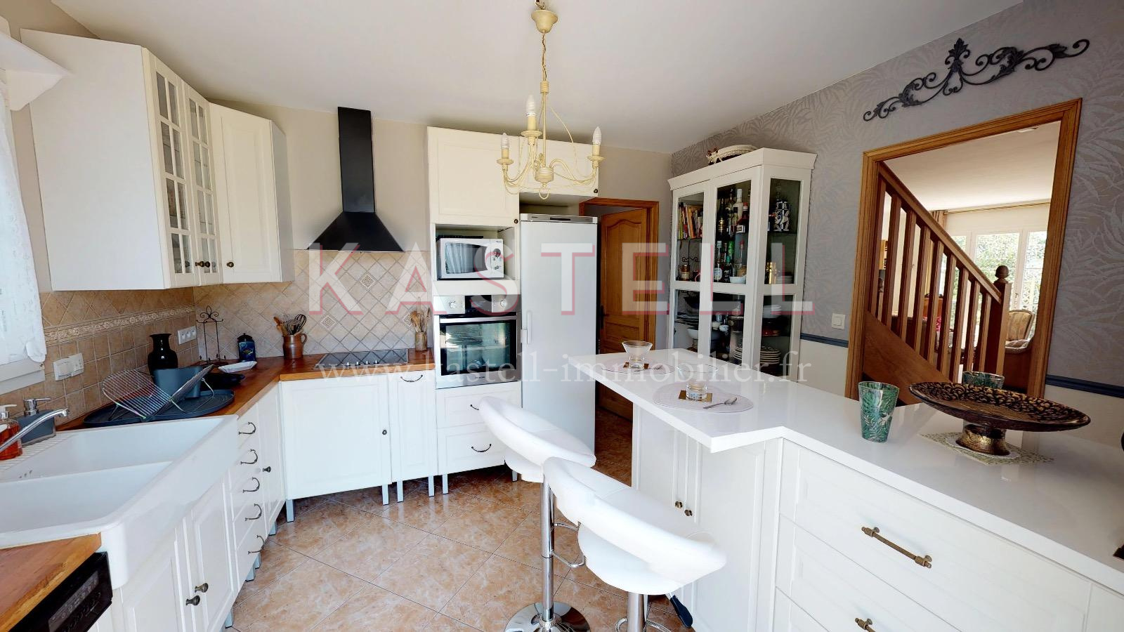 RDC : entrée avec placards, salon salle à manger de 42m2, cuisine indépendante équipée de 14m2, arrière cuisine, suite parentale avec salle d'eau et WC, garage une voiture.