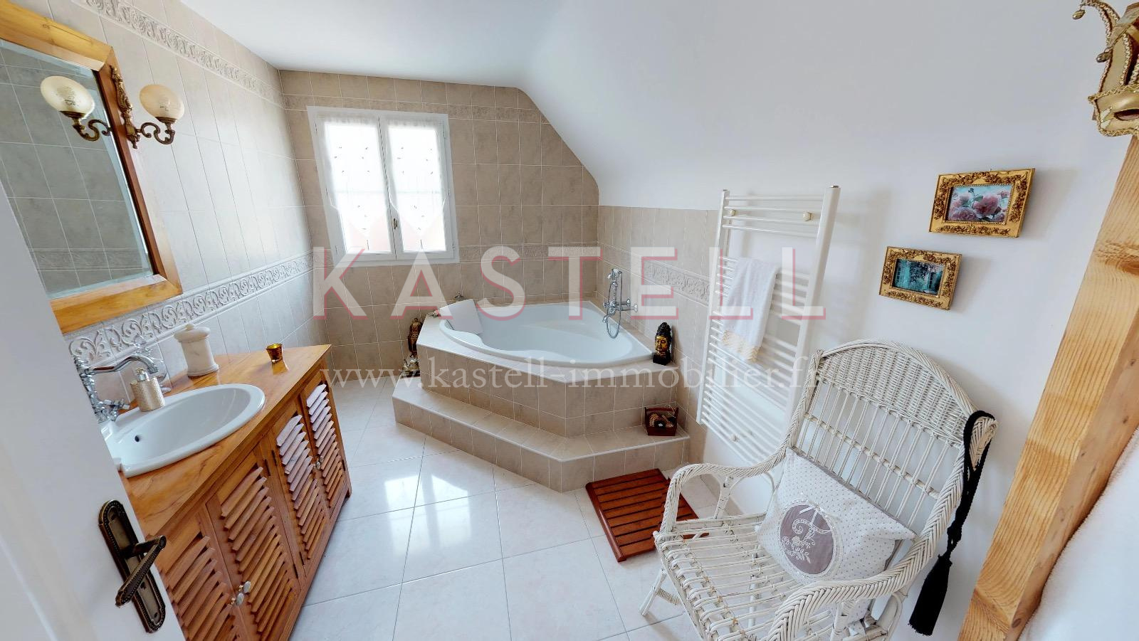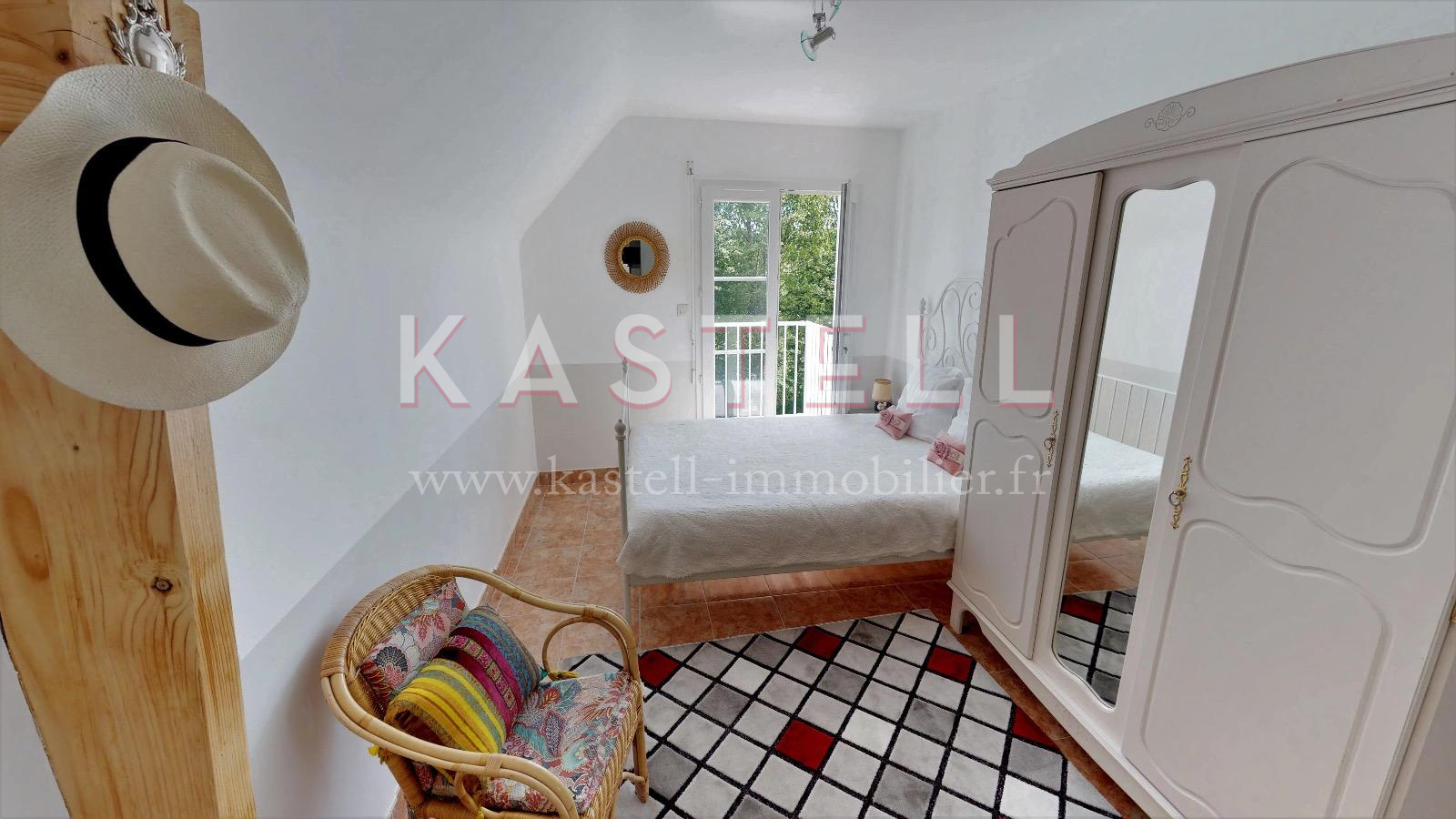 ETAGE : trois chambres, une salle de bains, une mezzanine.