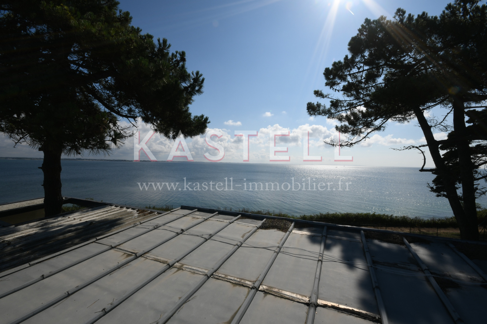 Face à la baie de Quiberon, situation exceptionnelle pour cette maison de plain pied à vendre exclusivement chez Kastell Immobilier. La propriété dispose d'un jardin arboré et clos de murs de 950m2, de trois bâtiments