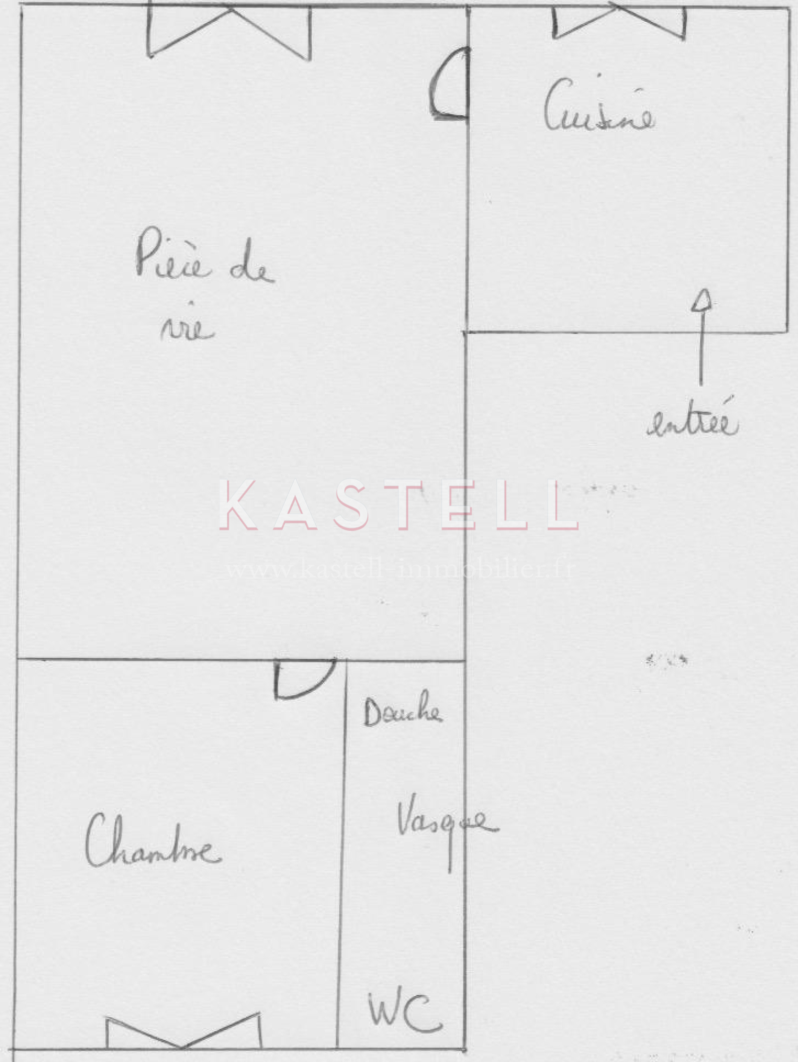 Entrée dans cuisine indépendante, pièce de vie de 13m2, chambre indépandante sur jardin de 9m2, salle de bains avec WC.
